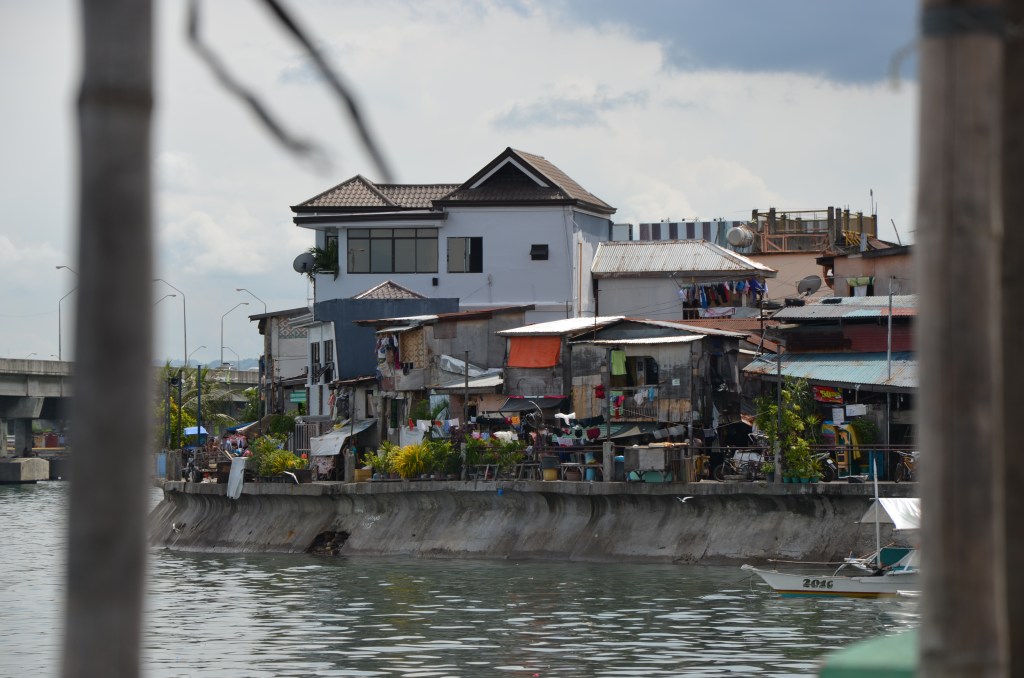 Cebu-City ist groß und imposant: die Skyline mit vielen neuen Hochhäusern und Prachtbauten auf der einen Seite, aber auch die ausufernden Armenviertel am Stadtrand. Das brutale Nebeneinander von Arm und Reich springt ins Auge. Es gibt etwa um die großen Einkaufszentren, v.a. deutlich um die Ayala-Mall ein ausuferndes Wirtschafts-, Vergnügungs- und Unterhaltungszentrum, wo neben diversen Banken, Versicherungen, Pfandhäusern, Telekommunikationsfirmen auch Mercedes Benz, BMW, andere asiatische und internationale Autozulieferer, Computer- und Internetfirmen etwa Lexmark geballt vorkommen und wo ärmlich aussehenden Personen der Zutritt verwehrt wird. In anderen Vierteln sind die kleinen Hütten oder gar nur Plastikplanen an die mit Stacheldraht oder Elektrozaun umgebenden „Paläste“ der Reichen gebaut, der Straßenhändler für Gebrauchtkleidung (Ukay-Ukay) hat seinen Stand unmittelbar vor dem SMARTshop, wo es die neusten Smartphones mit Vertrag gibt. Viele Baustellen für Gebäude und Infrastruktur bestehen.