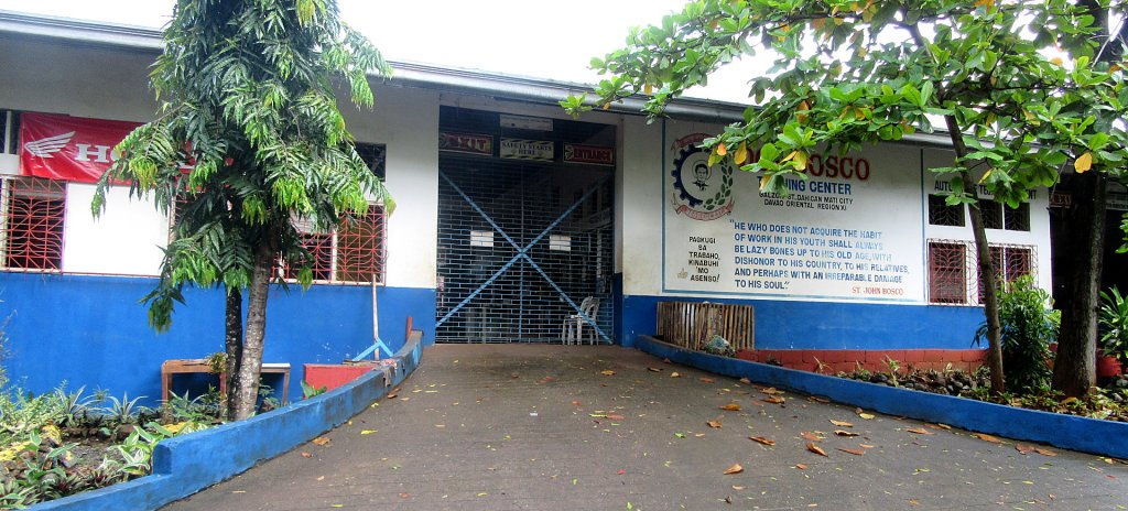 Das Don Bosco Training Center (DBTC) in Mati-City wurde 1992-93 als erstes und bisher einziges Zentrum in Mindanao gegründet. Auf dem großen Gelände mit den ausbildungsbedingten großen landwirtschaftlichen Lehr- und Nutzflächen gibt es neben Schul-, Werk- und Verwaltungsgebäuden etliche landwirtschaftliche Gebäude, Ställe und Gewächshäuser, die auch von den Jugendlichen kleingewerblich etwa durch den Verkauf von Gemüse oder Eiern genutzt werden können und somit auch deren Eigenengagement und Selbstbewusstsein stärken. Es gibt eine Gemeindekirche für Mati-Dahican sowie zwei Internatsgebäude für Jungen und eines für Mädchen mit insgesamt 120 Betten. Ein weiteres Gemeindegebäude wird regelmäßig für die zusätzliche Unterkunft von Jugendlichen genutzt. Hinzu kommen diverse Sportstätten und innovative Bauten für Unterricht und Freizeitgestaltung auf Gelände, z.B. aus Treibholz. Viele Arbeiten und der Aufbau von Gebäuden erfolgten durch Patres und Jugendlichen als Teil des Unterrichts, bzw. als Praktikum in den jeweiligen Fächern. Außerdem steht hier noch das Wohn- und Gästehaus der Salesianer. Bei allen Bauten wurde auf eine ökologisch und klimaverträgliche Energieversorgung geachtet; so liefert z.B. die Biogasgewinnung aus der Viehzucht die Energie zum Kochen. Zur Bewässerung in der Landwirtschaft wird Regenwasser in Zisternen gesammelt. Diverse Materialien werden recycelt.